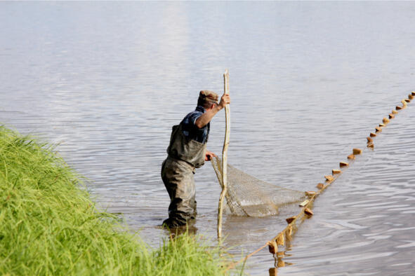 Один на лодке, второй на вездеходе по берегу. А у нас есть время пока выпить чаю. Вприкуску с комарами, коих здесь невероятное множество! Гул стоит такой, что друг друга плохо слыхать. Чуть шагнешь, и они с травы облаком поднимаются, облепляют тебя и норовят в лес утащить. Невод подтянули, и началась работа.