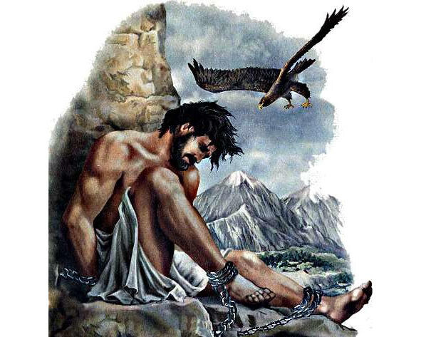 Прометея приковали его к скале, где орел клевал его печень. Это только в сказках боги в основном добрые