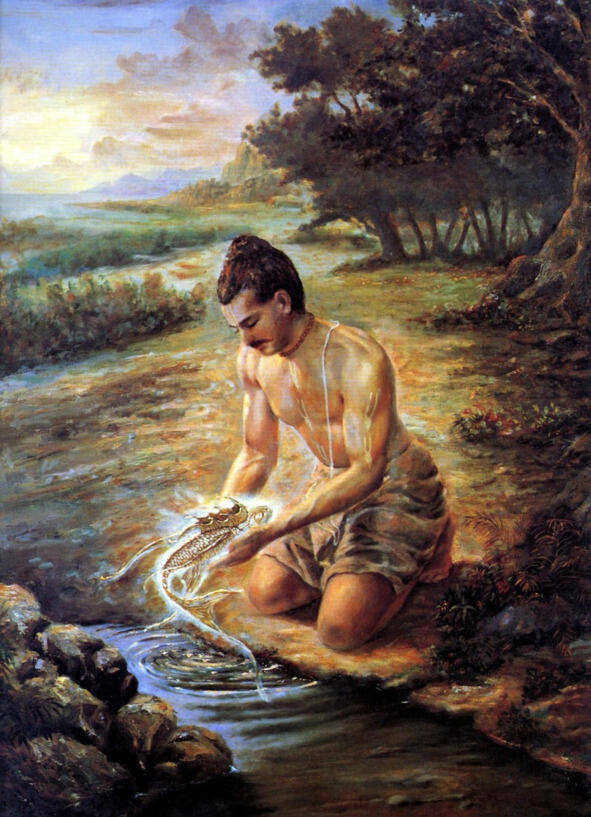 В индийских Ведах сообщается, что от потопа спасся рыбак Ману. Это был единственный простолюдин из всех кто выжил. Его спасла огромная рыба посланная богом. Позже она же приплывала к добропорядочному рыбаку в образе золотой рыбки и исполнила его заветное желание.