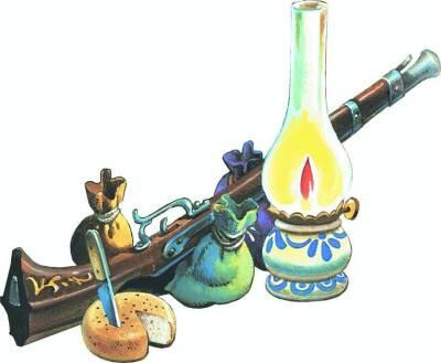 С пистолетом в дрожащей руке он направился к камину, рядом с которым лежал кот. Его горящие в темноте глаза разбойник принял за тлеющие угольки и поднёс к ним спичку. В то же мгновение кот вцепился ему в лицо, а собака прокусила ногу. Вскрикнув от боли, разбойник выронил пистолет. Пистолет выстрелил, и осёл так лягнул его в спину, что разбойник, выбив дверь головой, вылетел из дома. Вдогонку ему неслось зловещее «кукареку»!