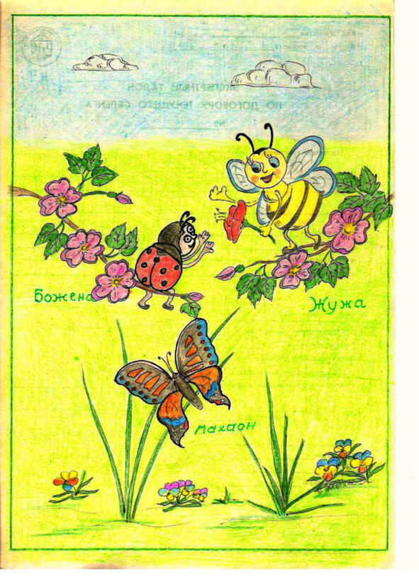Жужа с Боженой быстро нашли измученную бабочку. Вдвоём, они быстро и аккуратно заштопали порванное крылышко подруги! А потом Божена взяла краски, подаренные ей кротом, и тщательно закрасила весь шов стало вообще ничего не заметно! Очень хорошо получилось!