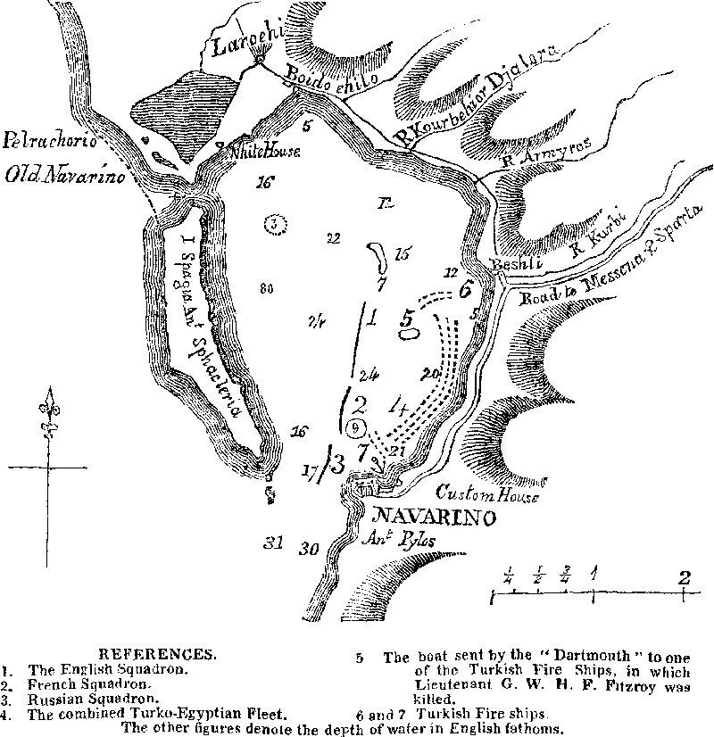 To the curious dilettanti in dates, &c. (such as our friend P.T.W. &c.) the following almost coinciding circumstances may not prove uninteresting:The recent engagement took place on the anniversary of the memorable battle of Salamis, 480 B.C. when the invading army of Xerxes was defeated by the Greeks; and on which day Euripides, the Greek tragic poet, was born: Nestor is said to have been born at Navarino, as we have already mentioned: and, lastly, the attack, of which the subjoined plan is illustrative, was made on the eve of the anniversary of the glorious battle of Trafalgar, in which victory the vice-admiral of Navarino, then captain of the Orient, was engaged.