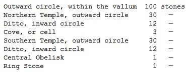 The grand total of stones, included in the temples and avenues, was 650; in the original temples, 188.