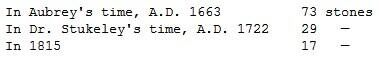 Of the devastation and decay of Abury, the following data will afford some idea: