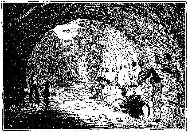 The remains of this cavern (situated in Normandy) command the attention of the lovers of history, not only from its antiquity, but also from its gloomy recesses, having afforded a safe shelter to our weak and cruel King John. Here he bade farewell to this province which he abandoned to the French Knights, and from whom he carefully concealed every trace of his retreat. The entrance is almost obscured, and tradition says it is so artfully managed as to have the appearance of a passage to another. The spot is barren, and it appears as if a thunder-bolt had burnt up the verdure. The spirit of Robert le Diable is supposed to haunt the cavern in the form of a wolf, and advances uttering piteous cries, and steadfastly gazing on its place of defence (the caverns extending to the River Seine) reviews his former glory and conquests, and seems bitterly to lament the present decay. In vain the peasants commence the chase; they assert that the wolf though closely pursued always eludes the vigilance of the huntsman. On the death of Richard I. of England, 1199, his Brother John was proclaimed King of Normandy and Aquitaine; the Duchies of Brittany, the Counties of Anjou, Maine, Tours and others, acknowledged Arthur, John's nephew, as their sovereign, and claimed the protection of the King of France, Philip II., surnamed Augustus; but he despairing of being able to retain these provinces against the will of their inhabitants, sacrificed Arthur and his followers to John, who in a skirmish with some of the Norman Lords, carried them all prisoners into Normandy, where Arthur soon disappeared: the Britons assert that he was murdered by his uncle; and the Normans that he was accidentally killed in endeavouring to escape. The death of their favourite Prince stung the Britons to madness, as in him centered their last hope of regaining independence: an ardent imagination led them to believe their future destiny connected with this child, which inspired them with a wild affection for Philip, as being the enemy of his murderer. They accused John before the French King of Arthur's murder, and he was summoned as a Vassal of Normandy to appear and defend himself before the twelve Peers of France. This command being treated with contempt, the lands John held under the French crown were declared forfeit, and an army levied to put it into execution. It was on this emergency that John found a safe place of concealment in the cavern of Robert the Devil.
