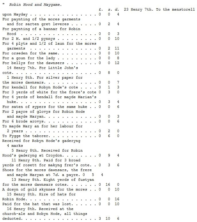 The games of Robin Hood seem to have been occasionally of a dramatic cast. Sir John Paston, in the time of King Edward IV. complaining of the ingratitude of his servants, mentions one who had promised never to desert him, and "ther uppon," says he, "I have kepyd hym thys iii yer to pleye Seynt Jorge, and Robyn Hod, and the Shryf off Notyngham, and now when I wolde have good horse he is goon into Bernysdale, and I without a keeper."