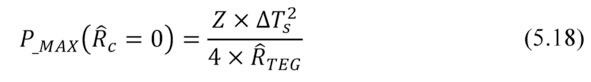 In a case of non-zero parasitic thermal resistance the optimal case is the equality ȒTEG=Ȓc. This is equivalent to the ideal case of half temperature difference on the generator module (ΔT=½ΔTs). The dependence of the power from the temperature difference is quadratic. This explains the ¼ of the optimum output power (5.185.19).
