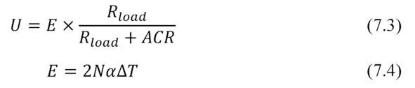 Voltage U provided by generator linearly depends on thermoEMF E, defined by Seebeck coefficient α.