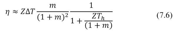 Apparently from a formula (7.6) at the given temperature difference (for example, single ΔT=1) efficiency η approximately linearly depends on Figure-of-Merit Z. But this dependence becomes complicated existence of a factor fractions with Figure-of-Merit parameter.