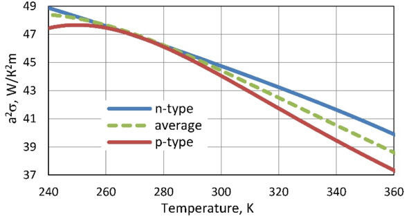 The key parameter of material (its Figure-of Merit Z) influencing efficiency has obviously expressed maximum near room temperatures (Fig. 7.1g) in the range of 280290K.
