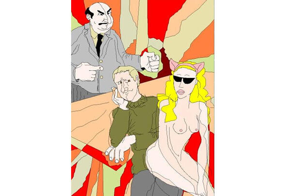 И только в этот момент он отворачивается от клиента, и наконец смотрит на Милочку: прекрасно сложенную и абсолютно нагую юную девушку, которая сидит в кресле, с детской непосредственностью поджав под себя ноги. Глаза её закрывают плотно пригнанные черные очки.