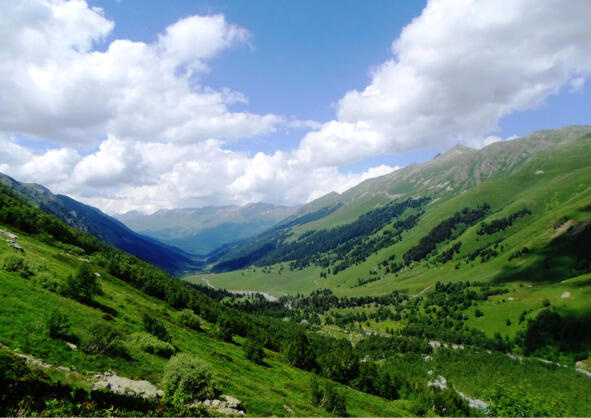 Алазар в обрамлении лесов и гор дивный цветок Земли. Алазар надежно спрятан. Вокруг горные кручи, покрытые лесами. За ними, чуть выше, второе кольцо охраны гряда гор. Каменные стражи в снежных шапках строго, но с любовью смотрят на Алазар. И клубятся, клубятся туманы в вышине, сворачиваясь в облака.