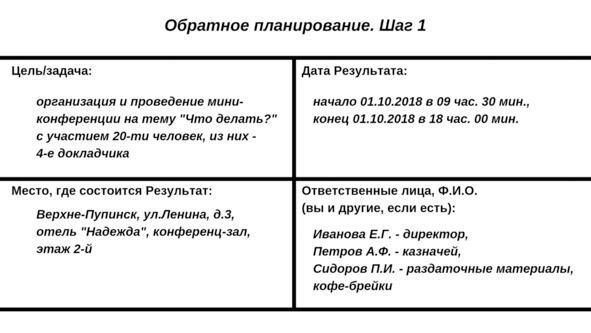 2. В этой обучающей практике мы будем работать с отрезком времени в один месяц. Далее вы сможете «обратно планировать» и неделю, и квартал, и год, и десятилетие любой срок, в том числе, планировать конкретные проекты.