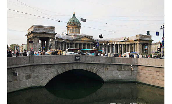Каменный мост, расположенный по оси Невского проспекта, построен в 1766 году на месте деревянного Рождественского моста. Названия: Рождественский мост до 1830, Казанский мост до 1923, мост Плеханова до 1944. Самый низкий мост в Петербурге.