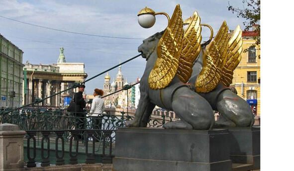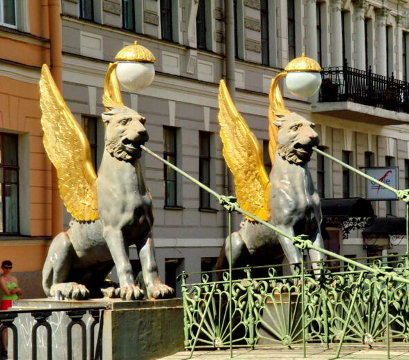 Четыре грифона (ск. П. П. Соколов) маскируют силовые элементы, к которым крепятся цепи.