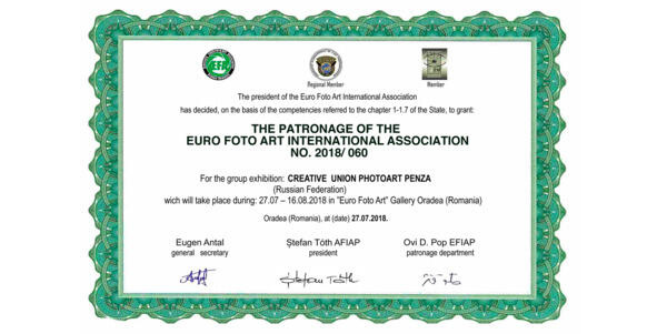 Ответная выставка фотоклуба «Пенза» отправлена для показа в Рязань, но не успели ее еще экспонировать, как поступило предложение от объединения «Еврофотоарт» из Румынии о выставочном обмене. За это время изменились не только предпочтения авторов в предоставлении своих работ, но изменился сам состав фотоклуба. Так появилось творческое объединение «Артефакт», которое в документах выставки в Румынии фигурирует под разными названиями.