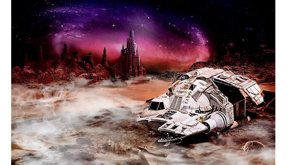 Ехали мы медленно и долго, осматривая окрестности планеты. Планета была каменистой, никакой растительности не было. Вдали показались очертания каких то скалистых холмов.