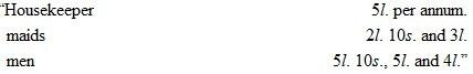 The wages given by Sir Roger Twysden to his household servants at this time were: