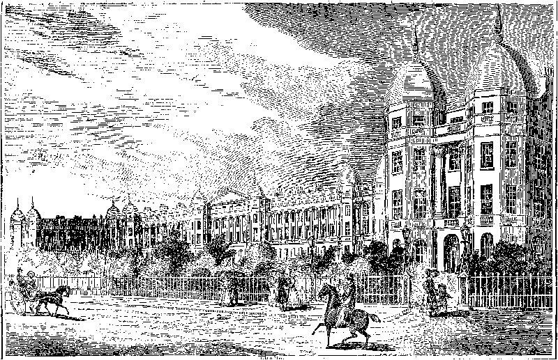 Is said to have been erected from the designs of Mr. Nash, but is considered as one of the least successful of his productions. It was among the earliest of the terraces in the Park, and its whimsical contrast with the chaster beauties of the adjoining structures soon became the signal for critical pasquinade.