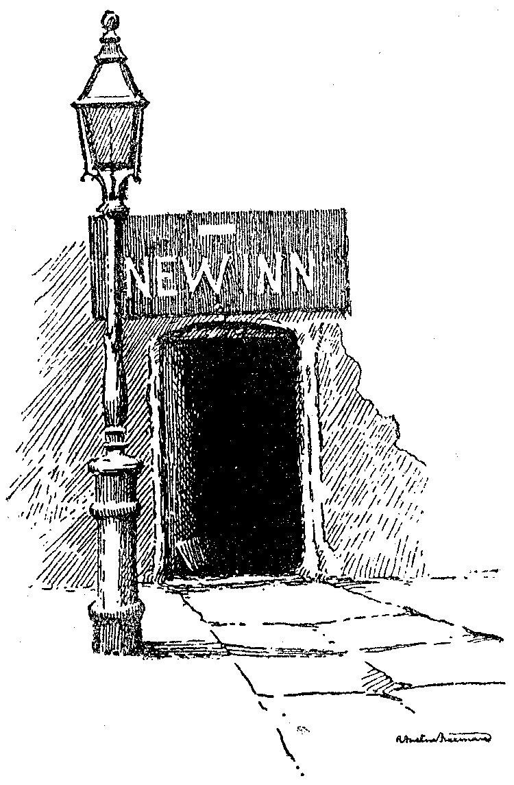 New Inn, the background of this story, and one of the last surviving inns of Chancery, has recently passed away after upwards of four centuries of newness. Even now, however, a few of the old, dismantled houses (including perhaps, the mysterious 31) may be seen from the Strand peeping over the iron roof of the skating rink which has displaced the picturesque hall, the pension-room and the garden. The postern gate, too, in Houghton Street still remains, though the arch is bricked up inside. Passing it lately, I made the rough sketch which appears on next page, and which shows all that is left of this pleasant old London backwater.