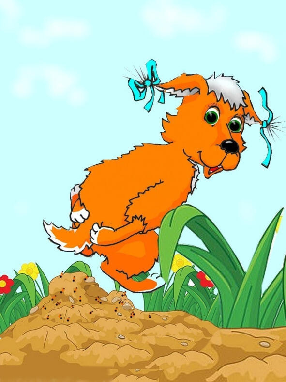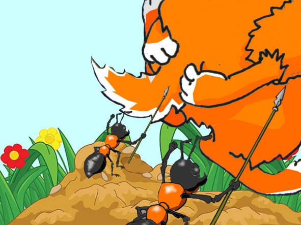 Зязя никогда не видела до этого ни муравейник, ни муравьёв. Она не знала, опасны ли эти маленькие жители леса. Муравьи тоже не сразу поняли, что на них свалилось сверху. Дом их был разрушен, обидчика надо было наказать. Красные крупные муравьи с копьями набросились на бельчонка. Пара уколов под хвост, и Зязя пулей вылетела из муравейника, и давай кататься по земле, корчась от боли и пытаясь скинуть остатки муравьёв и их дома с себя.