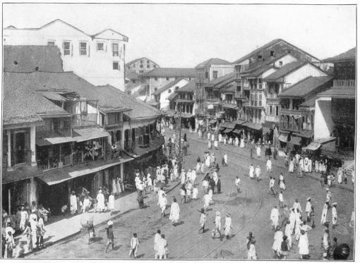 Bombay is the second city in population in India, Calcutta standing first on the list with 1,350,000 people, and, if you will take your map for a moment, you will see that the two cities lie in almost the same latitude, one on each side of the monstrous peninsulaBombay at the top of the Arabian Sea and Calcutta at the top of the Bay of Bengal. By the census of 1891 Bombay had 821,764 population. By the census of 1901 the total was 776,006, the decrease of 45,758 being attributed to the frightful mortality by the plague in 1900 and 1901. It is the most enterprising, the most modern, the most active, the richest and the most prosperous city in India. More than 90 per cent of the travelers who enter and leave the country pass over the docks, and more than half the foreign commerce of the country goes through its custom-house. It is by all odds the finest city between modern Cairo and San Francisco, and its commercial and industrial interests exceed that of any other.