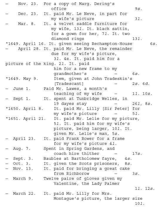 Independently of the frequent notices of relatives, almost serving as a family history, there are entries of high interest to the general historian and the antiquary. The costs of every article of use and virtue are set down in full, and a few of the items (which I find in my Common-place Book) will serve as a specimen of the general contents: