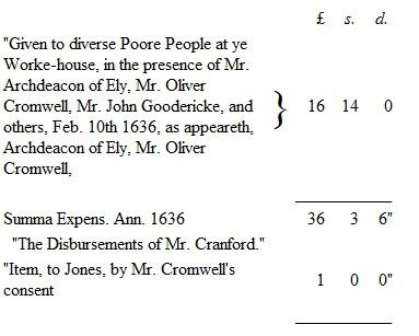 There is in Ely, where Cromwell for some years resided, an extensive charity known as Parson's Charity, of which he was a feoffee or governor. The following paper, which was submitted to Mr. Carlyle for the second or third edition of his work, contains all the references to the great Protector which are to be found in the papers now in the possession of the trustees. The appointment of Oliver Cromwell as a feoffee does not appear in any of the documents now remaining with the governors of the charity. The records of the proceedings if the feoffees of his time consist only of the collector's yearly accounts of monies received and expended, and do not show the appointments of the feoffees. These accounts were laid before the feoffees from time to time, and signed by them in testimony of their allowance.