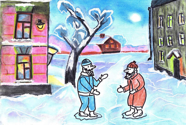 Морозная ночь. Тускло мерцают фонари, выхватывают желтыми глазами отдельных прохожих.