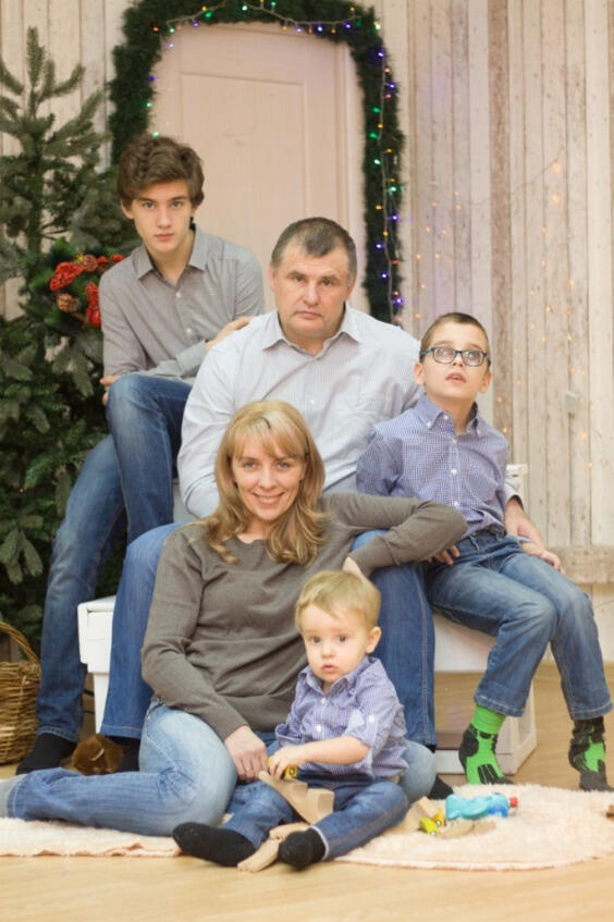 Четвертый сын Марк слабовидящий. Ему уделяю дополнительное внимание к общему развитию. Стараюсь брать его на спортивные сборы и на любые развивающие занятия. Прекрасно плавает, любит занятия спортом. И на первый взгляд сразу не поймёшь о дефектах зрения, когда он тренируется в спортивном зале со своими сверстниками.