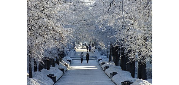 Барсуков вышел и оказался на широкой, ярко освещенной улице. По обе стороны стояли красивые дома в сталинском стиле. Посреди улицы тянулся великолепный бульвар. Он был весь оснеженный и заиндевевший. Уже рассветало. По проспекту спешил на работу трудовой люд.