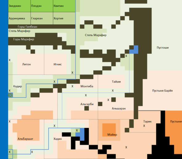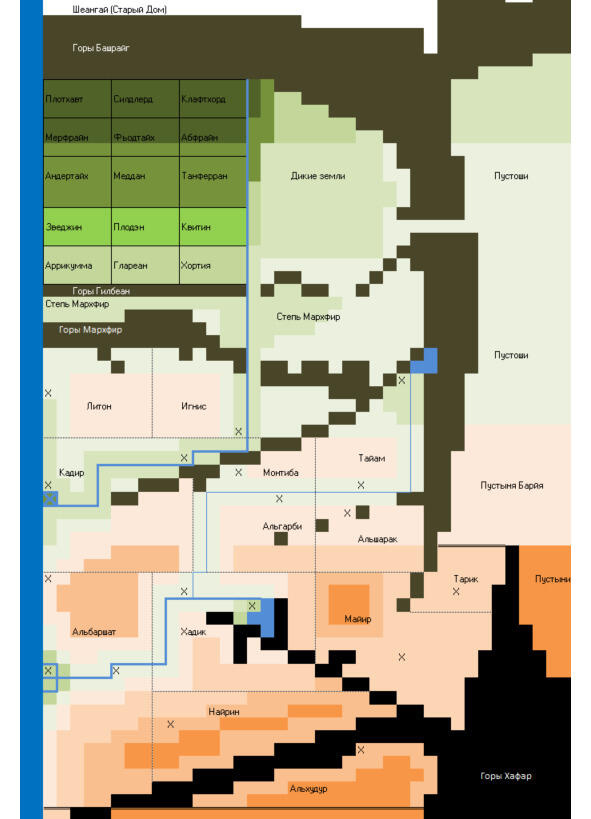 Карта земель, известных на конец VI века После Падения Звезды.