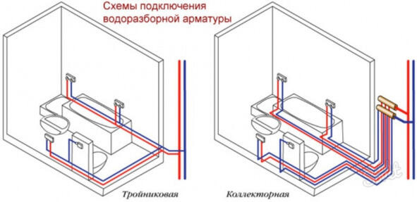 Планировка современных квартир предполагает составление двух способов по разведению труб (по выбору пользователя):