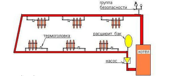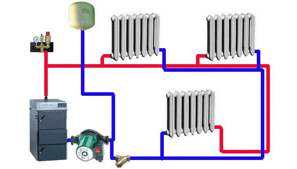 Однако, если сделать такое отопление в частном доме, то скорость движения теплоносителя будет небольшой, что скажется на медленном распространении тепла. Как же в частном доме сделать отопление с хорошей циркуляцией? Для этого в системе ставится насос.