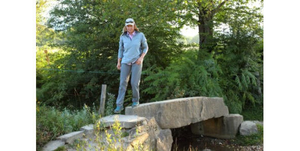 Игорь сделал несколько кадров: первый я на мостике; второй здесь же неподалеку оставленный неизвестным паломником на вершине столба ботинок с торчащим из него букетиком (такие инсталляции регулярно встречаются на Пути). Убрал фотоаппарат в рюкзак, и мы двинулись дальше. Я продолжала находиться в двух реальностях: своей и Хемингуэя. Сами собой вспоминались описания и рыбалки в пенистой воде у плотины; и охлажденных в роднике бутылок вина, на которых потом на жарком солнце выступили бусинки влаги; и выловленных форелей, выложенных в ряд, голова к голове, красивого цвета, твердых и крепких от холодной воды Все это, прочитанное еще в студенческой юности и время от времени перечитываемое для удовольствия, обернулось теперь моим собственным опытом.