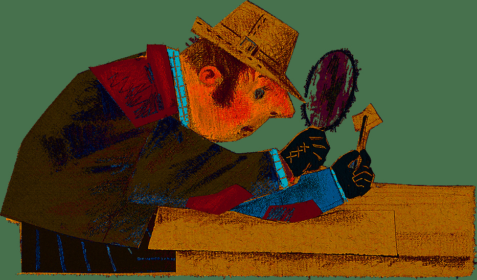 Минуточку! сказал Колобок. Он сел за стол, взял в руки огромное увеличительное стекло и внимательно стал рассматривать какой-то окурок. Войдите.