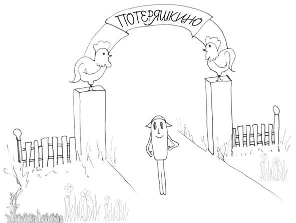 Не знаю сколько прошло времени, но когда я открыла глаза, то оказалась в чудесном месте перед забором из леденцовых палочек и воротами, на которых красовались петушки. Надпись на входе гласила: «Добро пожаловать в деревню Потеряшкино».