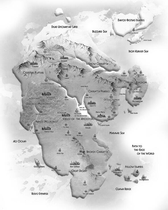 Emperor Tosho founded the Itoshinian nation, from which came two more races, the Ulutau and the Tuasmatus. The Taurs evolved from the Vedichs, and the Guawars evolved from the Djunits. Only the carefree Chekatta remained in the prairies near the Valley of the Ancestors.