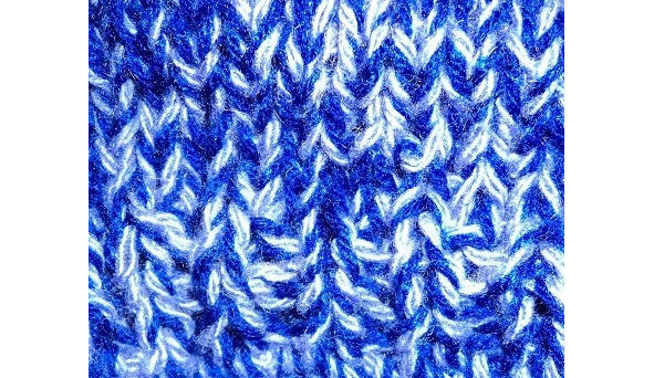 По низу изделия вяжем резинку 1х1, то есть одна петля лицевая, одна изнаночная. На изнаночной стороне по рисунку. Обвязываем низ жилета «рачьим шагом» нитью в два сложения синей и голубой.