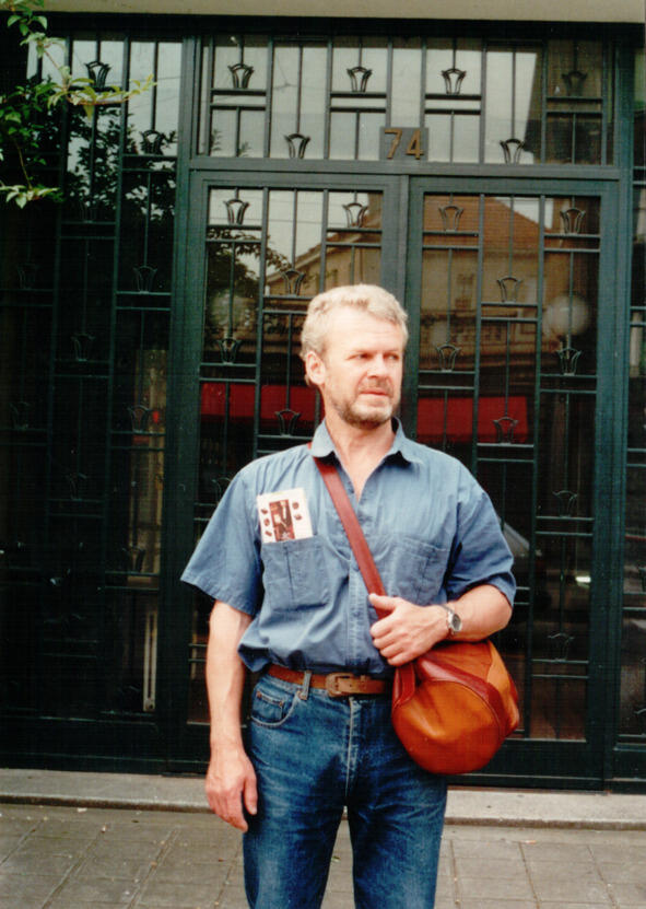 Евгений Васильевич Черносвитов у входа в свой родной дом. Швейцария. Женева.