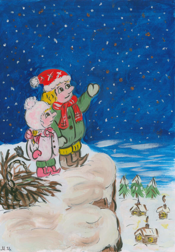 Вскоре корзинка была полна хвороста. Тролличка весело скакала вокруг брата и пела рождественскую песенку, которую она недавно разучила: