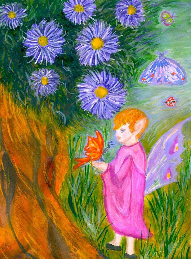 Робин был маленьким эльфом. Когда я сказала маленький, то имела в виду размер примерно в половину вашей ладошки, а может даже и меньше. Наш Робин живёт в сказочном лесу. Представьте себе огромные мачтовые деревья, мощные в основании и, по мере своего возвышения, становящиеся едва заметной точкой в небе. По крайней мере, так казалось рыжеволосому эльфу, когда тот, проснувшись рано утром, выходил на ветку погреться первыми солнечными лучами. Вот и сейчас, он потянулся и, прищурившись голубыми озорными глазками, посмотрел на восход. И когда большая капля росы упала прямо на его курносый нос, щедро одарённый веснушками, Робин вспомнил, что сегодня крайне важный день в жизни чудного народа, живущего на деревьях, и совсем скоро крохотный комочек на спине превратится в грациозные крылья, переливающиеся при свете луны всеми цветами радуги. День посвящения малышей во взрослую, полную всяческих приключений жизнь наступил! Ох, как он того ждал, как мечтал расправить крылья, вдохнув полной грудью ночную прохладу, полететь над бескрайними просторами Страны Фей Священнодействие начнётся на стыке дня и ночи, во время сумерек. Апогеем праздника станет восход полной луны, и тогда, сотни искрящихся и трепещущих крылышек наполнят таинственным звоном древний лес. В этот момент всё живое, будто склоняясь в торжественном реверансе, отдаст должное почтение вечному таинству жизни.