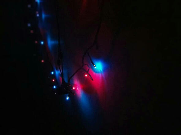 А гирлянда мерцала во тьме разноцветной загадкой,