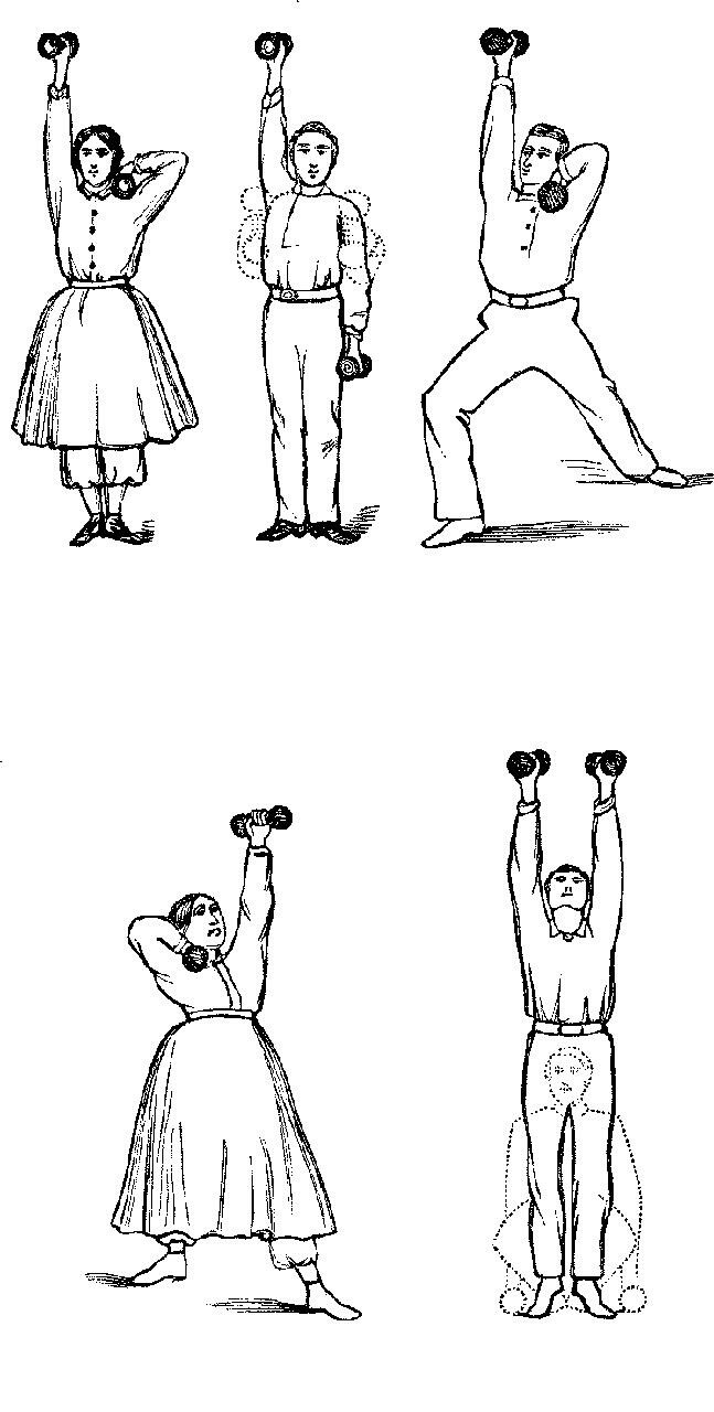By way of illustrating the new system of dumb-bell exercises, I subjoin a few cuts. The entire series contains more than fifty exercises.