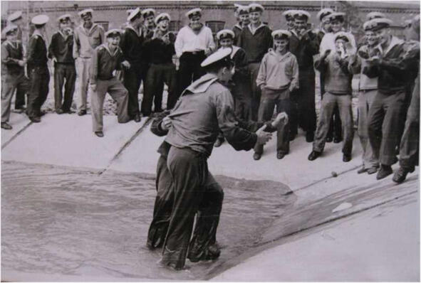 Кстати, бассейн использовался не только для технических нужд. При необходимости он становился орудием наказания. В него «макали» в одежде курсанта, чем-то огорчившего своих товарищей, например, поведавшего ложную информацию.