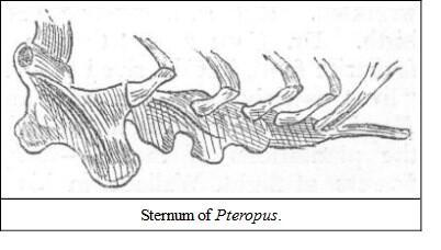 "Bats have the arms, fore-arms and fingers excessively elongated, so as to form with the membrane that occupies their intervals, real wings, the surface of which is equally or more extended than in those of birds. Hence they fly high and with great rapidity."Cuvier. They suckle their young at the breast, but some of them have pubic warts resembling mammæ. The muscles of the chest are developed in proportion, and the sternum has a medial ridge something like that of a bird. They are all nocturnal, with small eyes (except in the case of the frugivorous bats), large ears, and in some cases membranous appendages to the nostrils, which may possibly be for the purpose of guiding themselves in the dark, for it is proved by experiment that bats are not dependent on eyesight for guidance, and one naturalist has remarked that, in a certain species of bat which has no facial membrane, this delicacy of perception was absent. I have noticed this in one species, Cynopterus marginatus, one of which flew into my room not long ago, and which repeatedly dashed itself against a glass door in its efforts to escape. I had all the other doors closed.