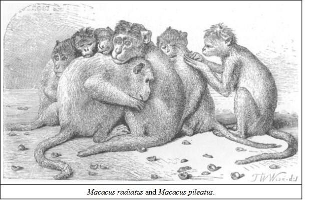 This monkey is one over which many naturalists have argued; it is synonymous with Macacus speciosus, M. maurus, M. melanotus, and was thought to be with M. brunneus till Dr. Anderson placed the latter in a separate species on account of the non-annulation of its hair. It is essentially a denizen of the hills; it has been obtained in Cachar and in Upper Assam. Dr. Anderson got it in the Kakhyen Hills on the frontier of Yunnan, beyond which, he says, it spreads to the southeast to Cochin-China.