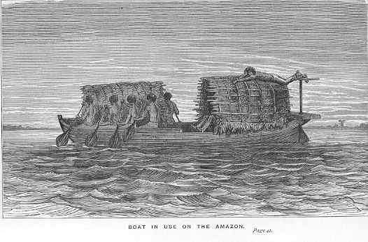 In order to show that the paddle of the canoe is more natural to man than the oar, we present a picture of the canoe used by the Indians of the Amazon in South America. Here we see thar the savages of the south, like their brethren of the north, sit with their faces to the bow and urge their bark forward by neans of short paddles, without using the gunwale as a fulcrum. The oar is decidedly a more modern and a more scientific instrument than the paddle, but the latter is better suited to some kinds of navigation than the former.