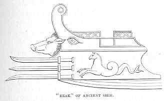 The forms of the ancient ships were curious and exceedingly picturesque, owing to the ornamentation with which their outlines were broken, and the high elevation of their bows and sterns.