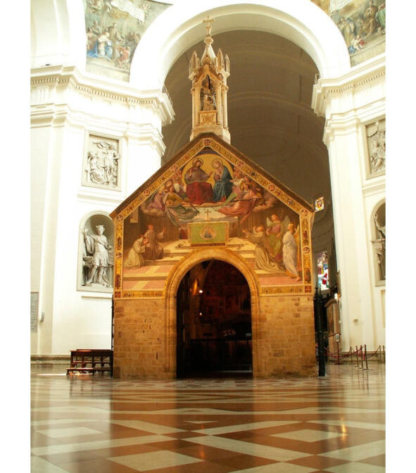Таков уж западный менталитет за услугу надо платить. Так и накапливалось богатство. Настолько серьёзное, что позволило отстроить францисканцам огромный храм над Порциунколой, а в ближайшем Ассизи, родине святого Франциска монастыри, храмы и кафедральный собор в трёх уровнях. Для его росписи уже через несколько десятков лет пригласили лучших мастеров эпохи. Среди них Симоне Мартини (он же Симоне Сиенец) и основоположник европейской живописи Джотто ди Бондоне, который написал серию фресок в верхнем храме, посвящённую жизни св. Франциска.